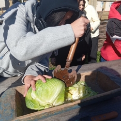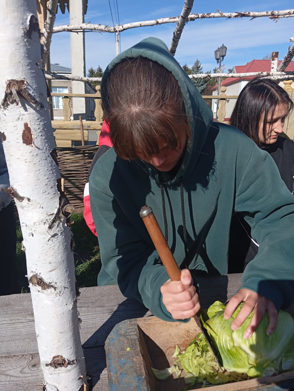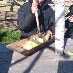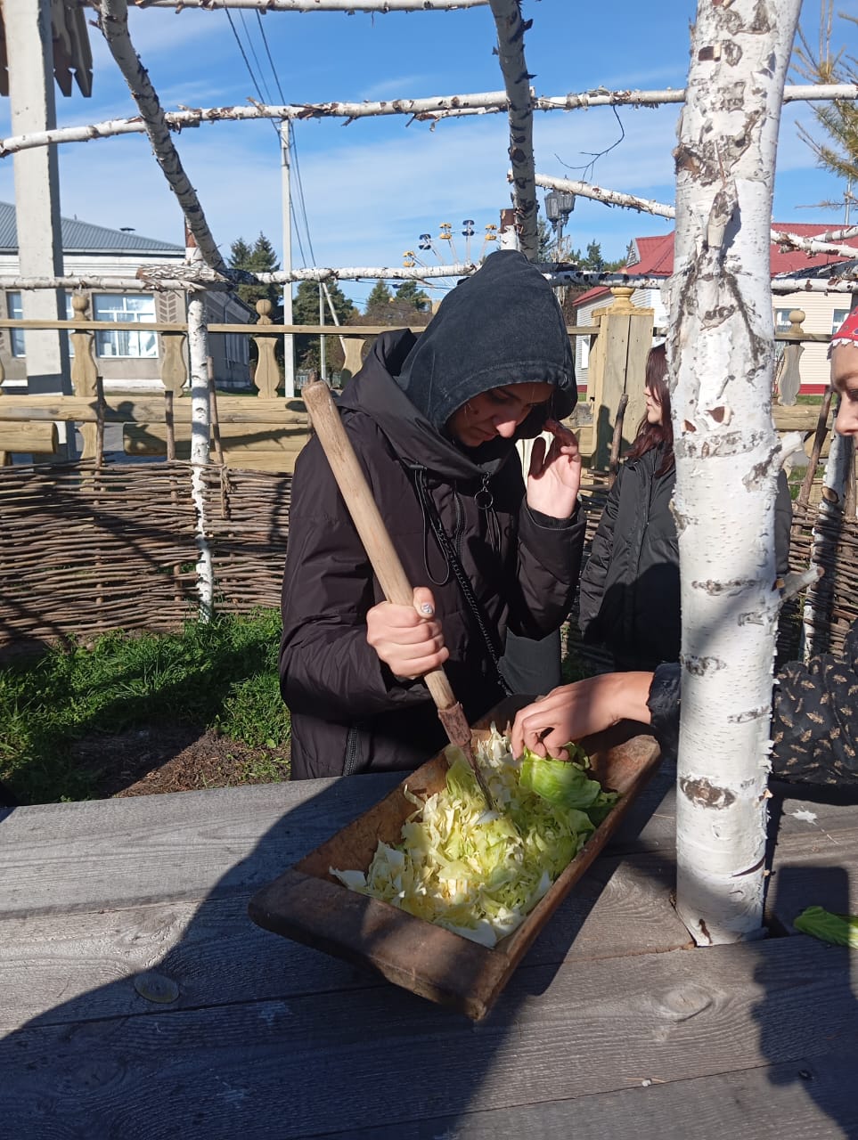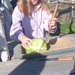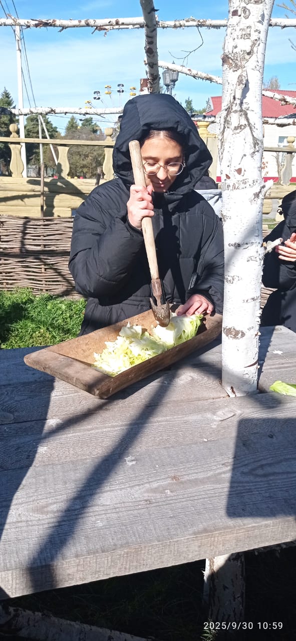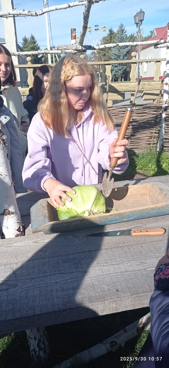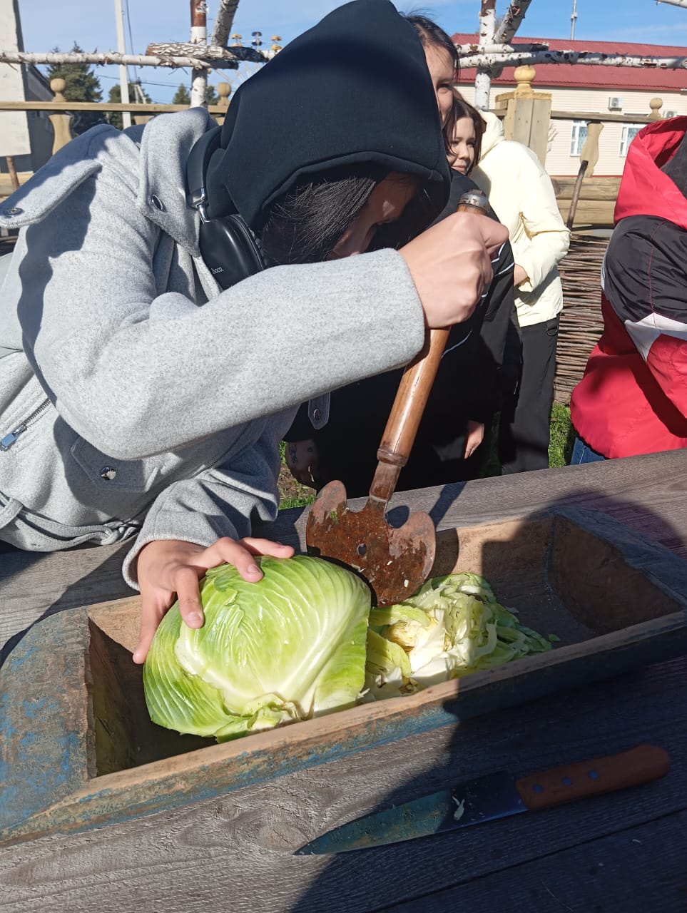 Все присутствующие активно включились в работу – секли сечками в корытце капусту и узнали о старинных рецептах квашения капусты. Посиделки продолжились народными играми и забавами, а в завершении сделали общее фото на память. Мероприятие получилось замечательное!