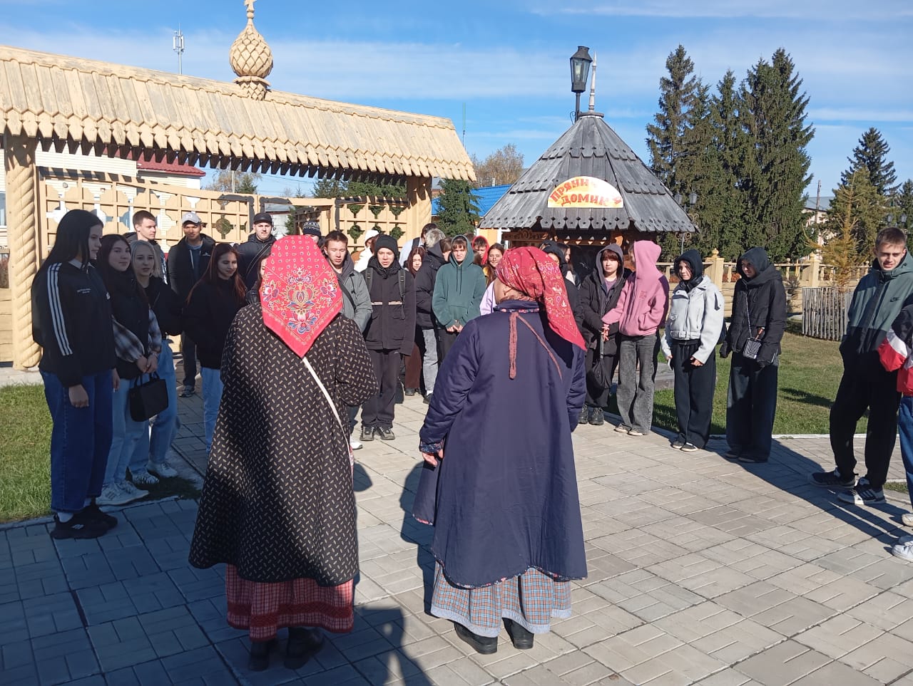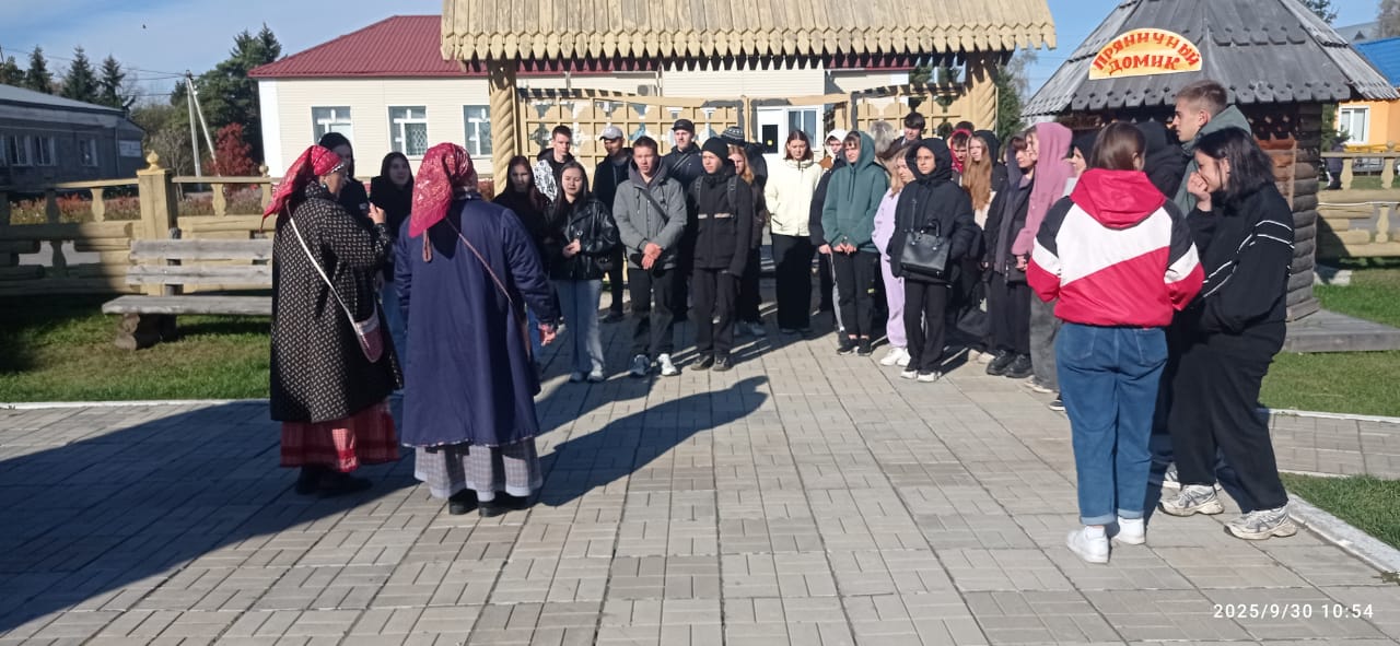 В последний день сентября архитектурно-этнографический комплекс посетили студенты 15 и 25 группы Большереченского сельскохозяйственного техникума, обучающиеся по профессии повар-кондитер. Ребят пригласили на «Федорины посиделки», чтобы весело провести время и узнать, как в старину крестьяне готовились к зиме, вместе делая запасы, также гости узнали о приметах осени.